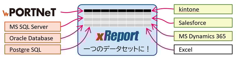 PORTNeT以外のシステムとデータ統合が可能です。データベースや各種クラウドサービスにダイレクトに接続して、必要なデータを統合します。